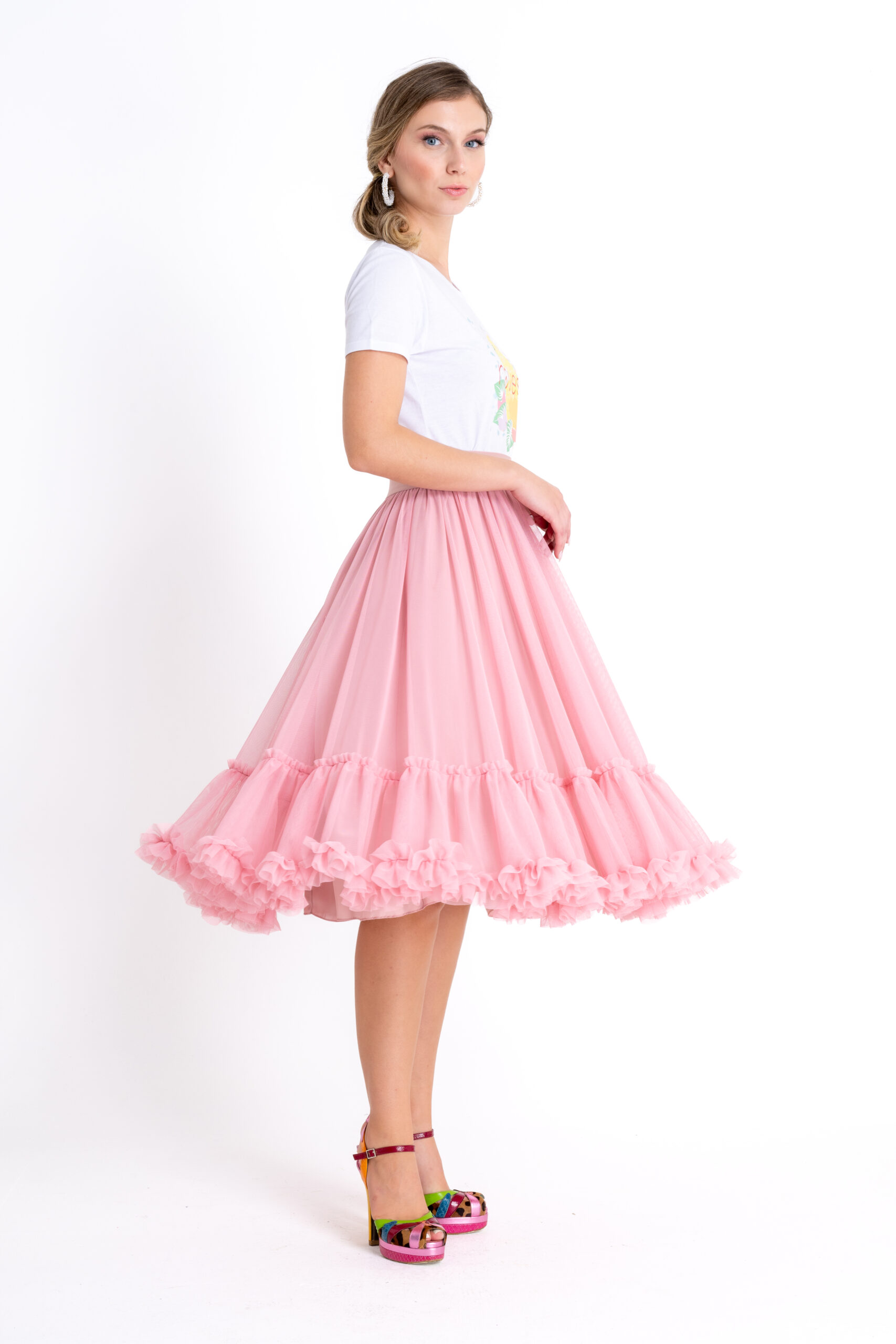 Coctail tulle midi skirt with stretchy waist and volan details
